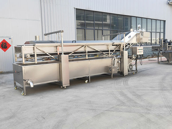 主要工作原理:物料由入料端進入漂燙機,經過機內高溫蒸煮,由鏈板緩慢輸送至出料端,進入下一道工序